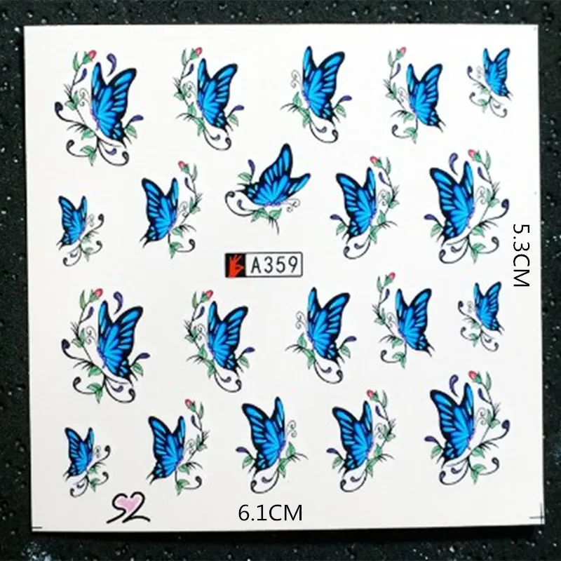 amazing 50pcs Watercolor Floral Flower Sticker Nail Decals Set 6.1*5.3cm Bowknot Love Feather Designs Gel M