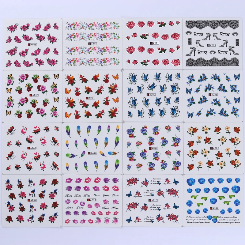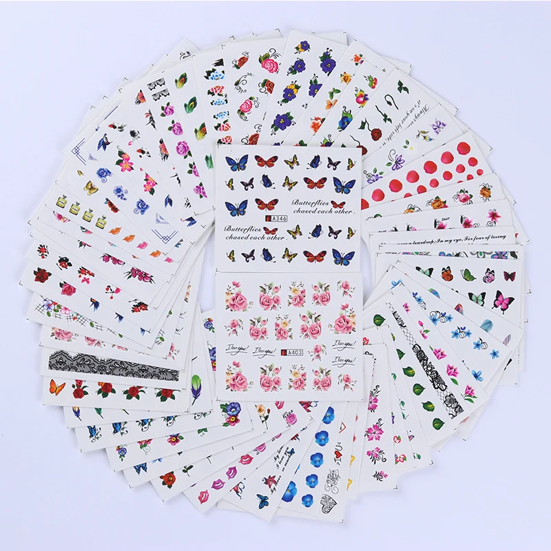 Very best 50pcs Watercolor Floral Flower Sticker Nail Decals Set 6.1*5.3cm Bowknot Love Feather Designs Gel M