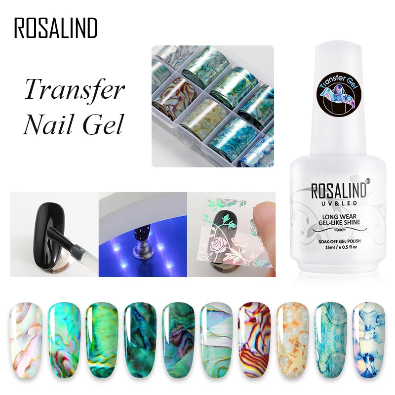 New ROSALIND Transfer Gel Nail Polish With Sticker Nail Gel Hybrid Primer UV Lamp For Manicure Semi Per