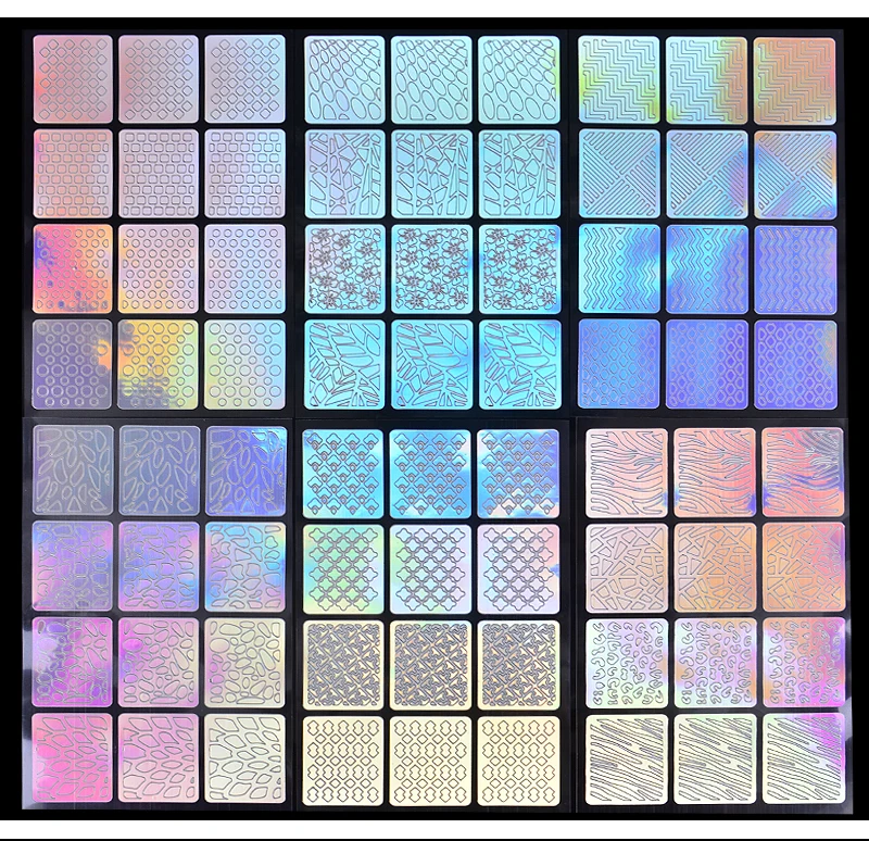 12 Sheets/Lot Laser Nail Vinyls Laser Irregular Grid Stencil Polish Transfer Manicure Tools Nail Art Stickers Stamping Template,144 Tips/Set Irregular Grid Stencil Creative Nail Art Design Square Hollow French Style Template Stickers for Nails, 144 Tips/Set Irregular Grid Stencil Creative Nail Art Design Square Hollow French Style Template Stickers for Nails