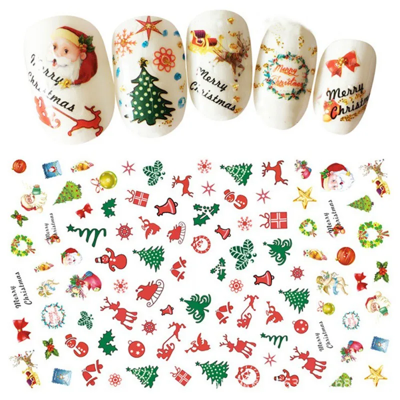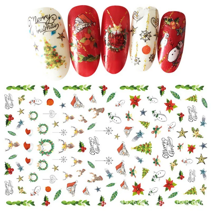 Best Christmas Cartoon Nail Sticker Watermark Manicure Sticker for Xmas Eve Home Garden Party Christmas