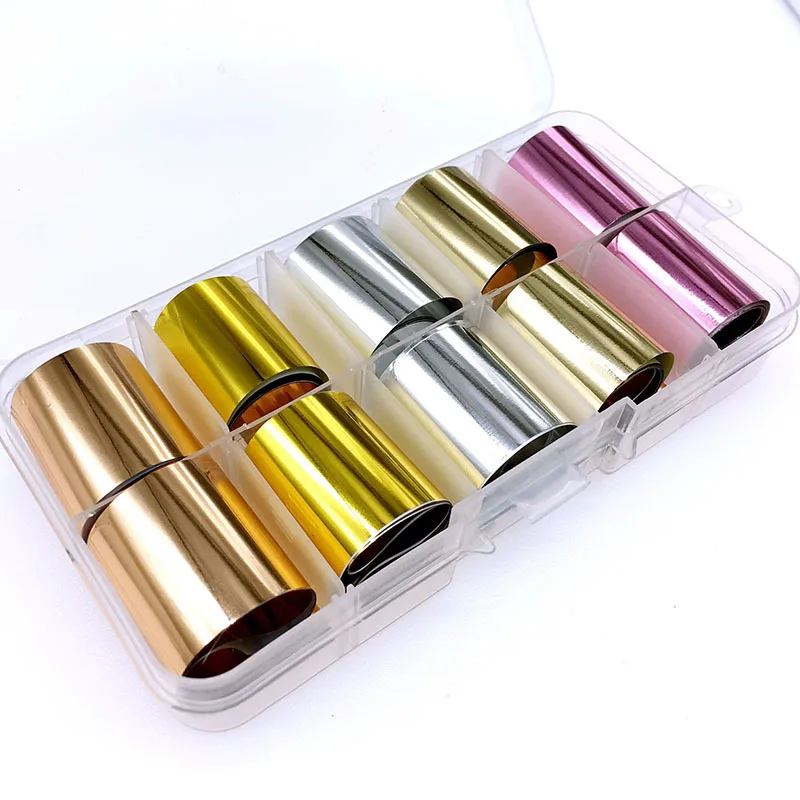 Best 1 Box Nail Foils Stickers Metal Gold ilver Color Starry Paper Transfer Foil Wraps Adhesive Decals N