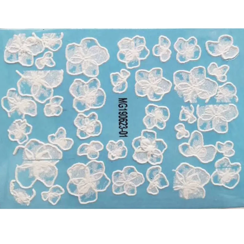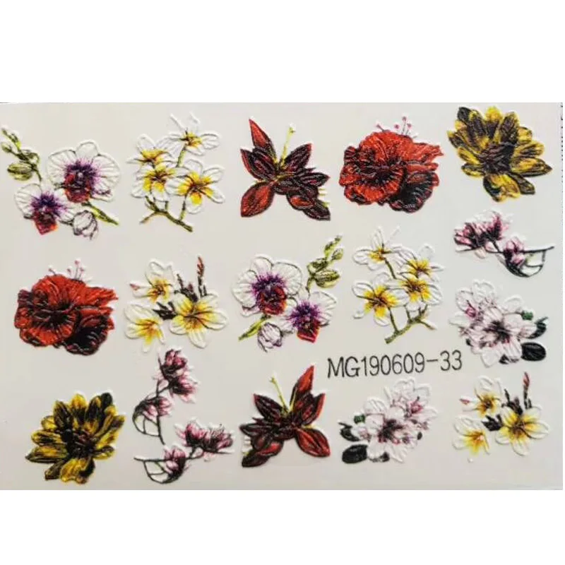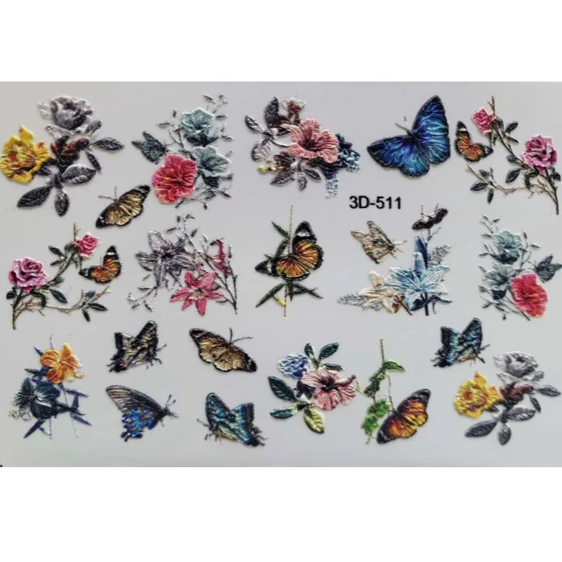 discounted 3D Acrylic Engraved Flower Nail Sticker Embossed Flower Butterfly Nail Water Decals Empaistic Nail
