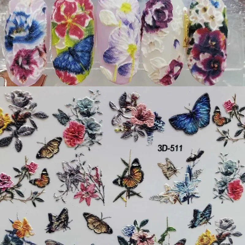 Greatest 3D Acrylic Engraved Flower Nail Sticker Embossed Flower Butterfly Nail Water Decals Empaistic Nail