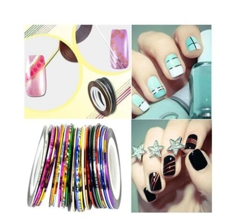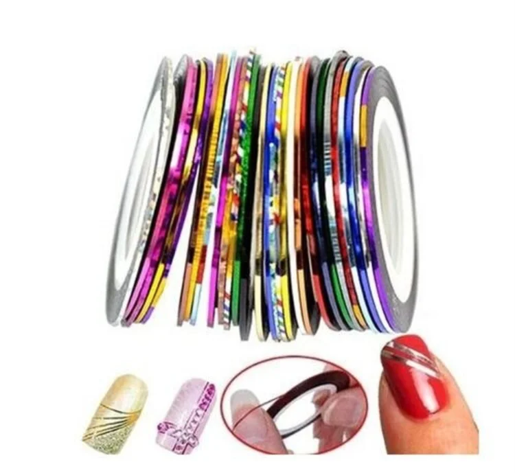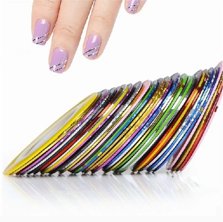 astounding 30Pcs mix color rolls striping tape metallic yarn line nail art sticker decal decoration 4964 (Colo