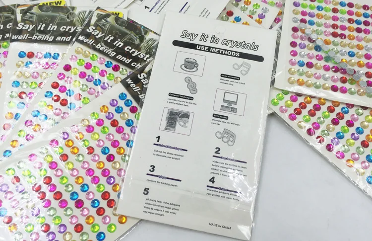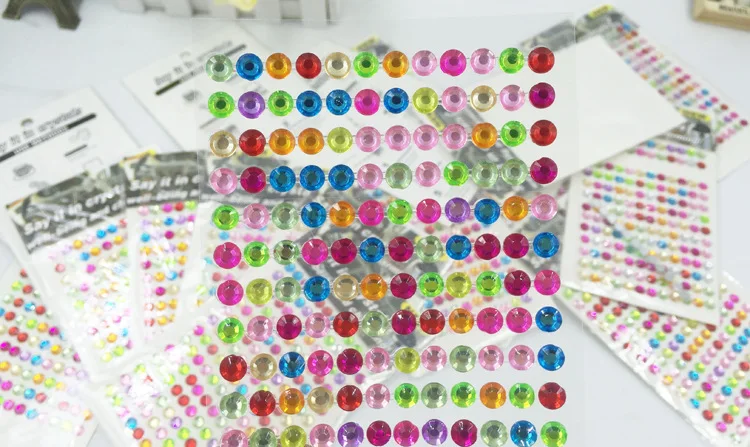 incredible 168pcs/sheet 6MM Loose Rhinestone Sticker Round Flatback Acrylic Stickers Self-Adhesive Paste DIY N