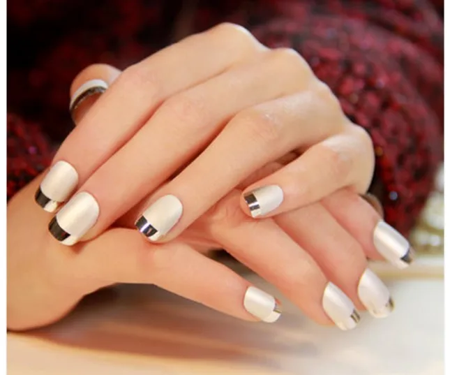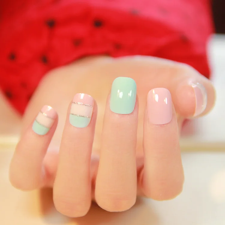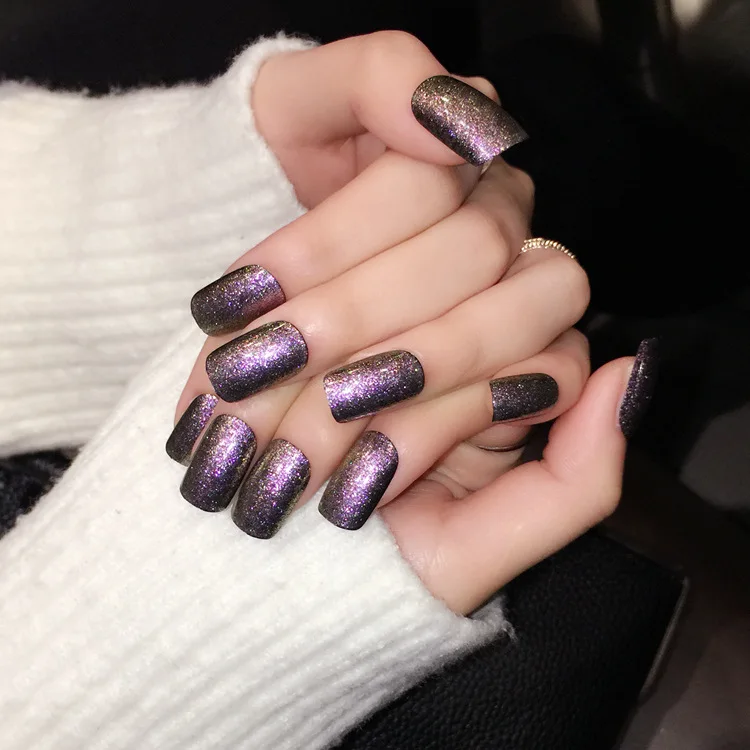 incredible 2018 New 24pcs Smooth Gradient Geometric Glitter False Nails Long Square Detachable Full Cover Fake