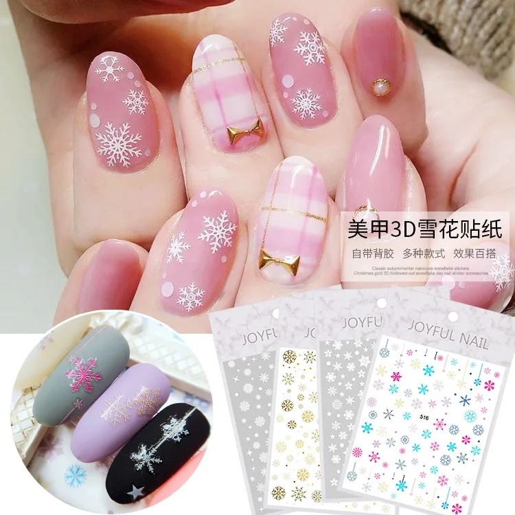 remarkable Japanese snow nail sticker girl 3D Christmas snow decal gold stereo decal white color decal