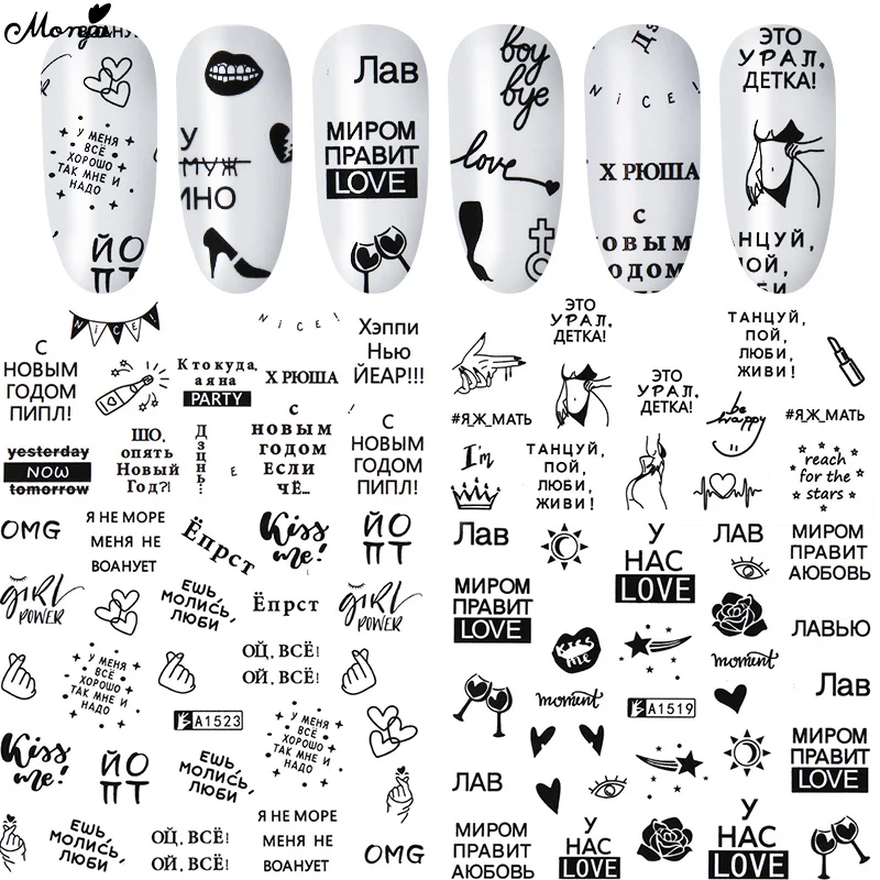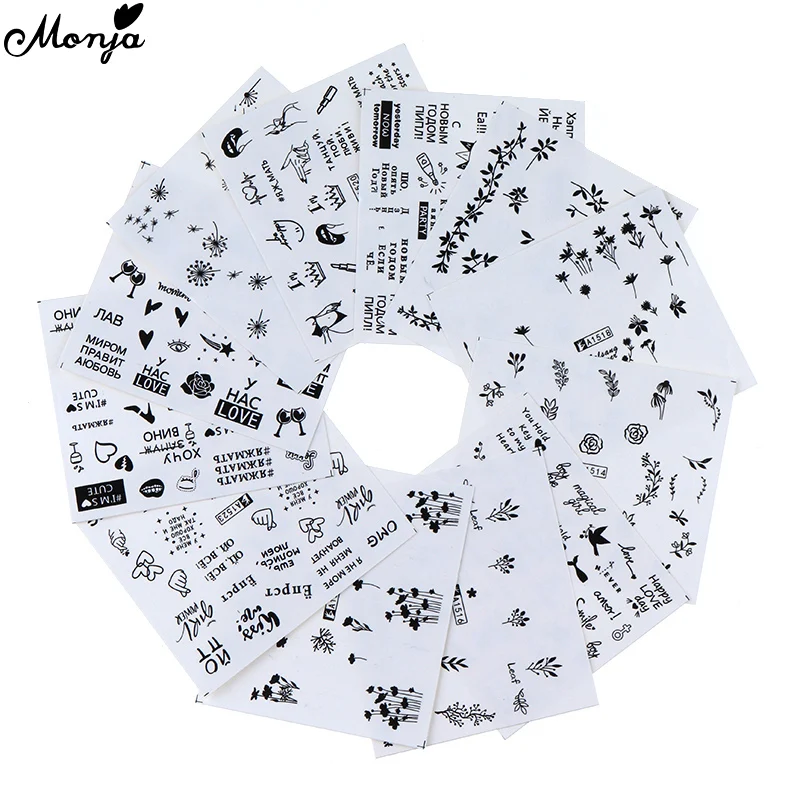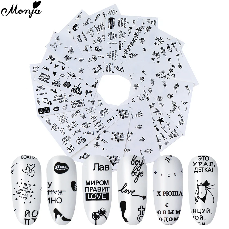 amazing Monja 12pcs Russian Pattern Design Nail Art Water Transfer Stickers DIY Black White Watermark Nail
