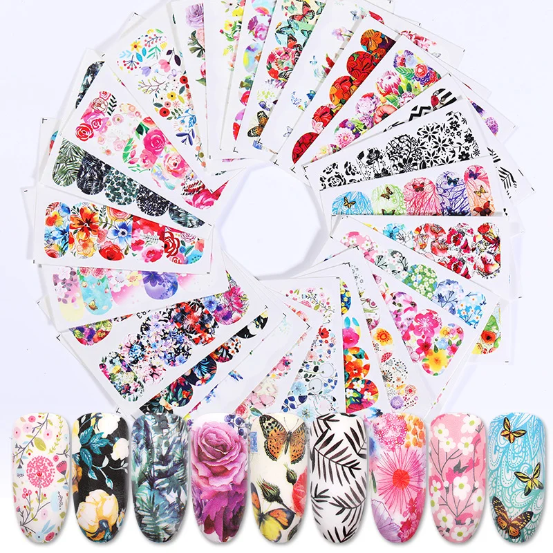 Very best 25Pcs/Pack Mixed Patterns Nails Sticker Paper Nail Water Transfer Decals Stickers Flowers Leaf Nail