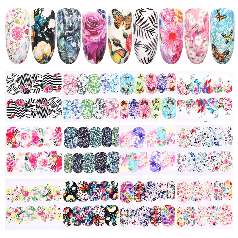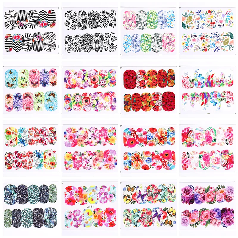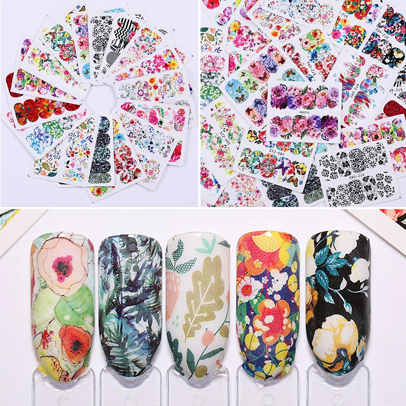 low cost 25Pcs/Pack Mixed Patterns Nails Sticker Paper Nail Water Transfer Decals Stickers Flowers Leaf Nail