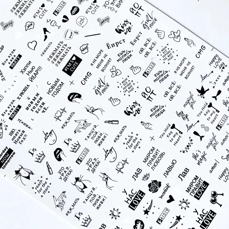 Promo 12pcs/set Russian Letter Sexy Girl Water Decals Nail Art Sticker Set Butterfly Leaves for Manicure